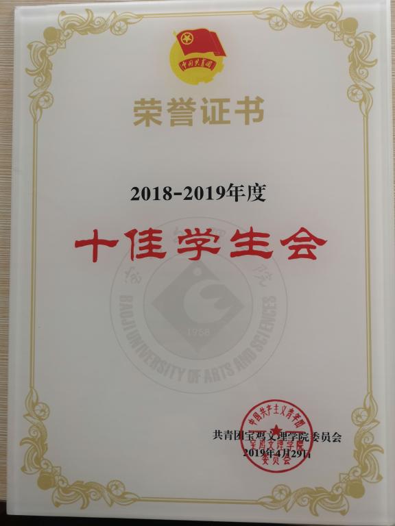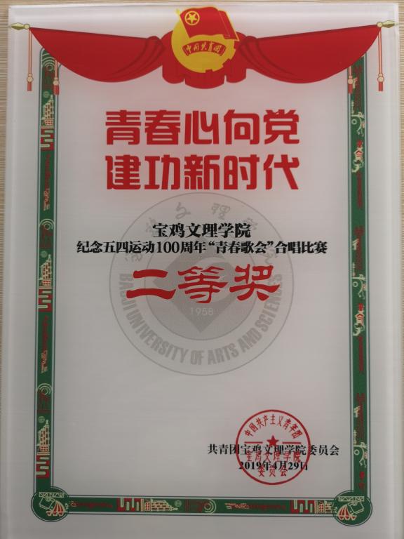 最终,我院获得合唱比赛二等奖,同时,在2018-2019学年度五四评优中,我院获得先进团总支”、“十佳学生会”等荣誉称号
