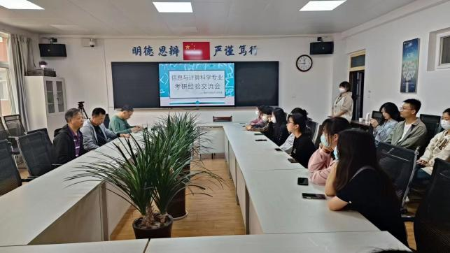 4月20日上午,我院在思贤楼419、424分别召开统计学、信息与计算科学专业考研经验交流会。学院考研工作负责教师雷刚、高磊,相关专业负责人、系主任李艳颖、王彪、杨建宏,辅导员张景瑞等6名教师,2023年考研拟录取学生王亦卓等7名同学及2020级统计学、信息与计算科学专业备考学生共计60余人参加交流会。