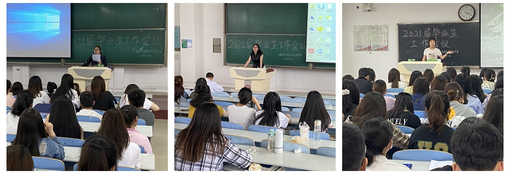 5月14日下午,我院分别在思贤楼420、408、426教室召开数学与应用数学专业、信息与计算科学专业、统计学专业2021届毕业生工作会议。数学与信息科学学院党委副书记王欢、副院长杜红珍、辅导员张文婧、王耀兰、班主任王向锋、毕业生实习指导老师邢星、2014级优秀毕业生张玉洁及2017级全体毕业生参加了会议。