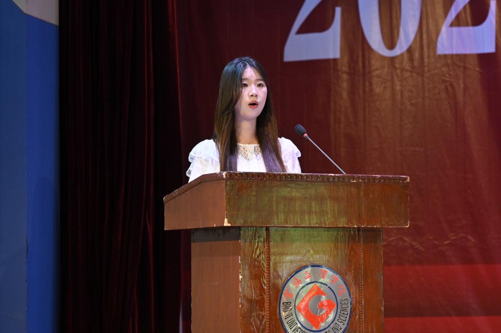 2020级统计学2班公嘉仪同学代表我院在校生为2023届毕业生致欢送辞,祝福学长学姐们前程似锦,未来可期。2019级数学与应用数学1班袁嘉瑶同学代表我院全体毕业生向在校期间所有关心、帮助过他们的师长和亲友表示最衷心的感谢。他们会带着母校和老师们的期盼和嘱托,在未来路途中做具有时代使命感和责任担当的高素质标准人才,展现数信学子的风采!