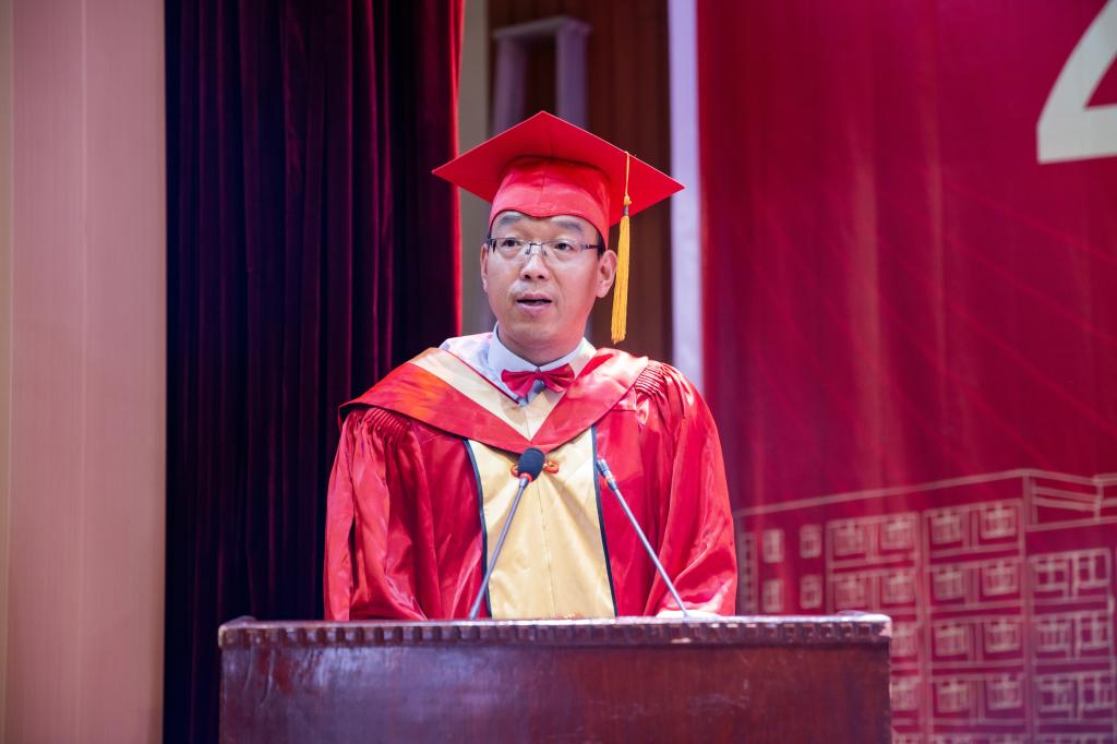 刘淳安代表学院向2024届顺利完成学业的全体毕业生表示热烈祝贺,向为同学们的成长成才付出辛勤劳动的老师们表示衷心感谢,向含辛茹苦养育和支持同学们完成学业的家人们致以崇高敬意。他充分肯定了同学们在校期间的努力与取得的成绩,感谢同学们为学校学院发展作出的重要贡献。他向同学们提出了四点希望:一是要志存高远,勇于担当。同学们随着知识的积累和能力的增强,身上更多了一份对国家、民族、社会的责任与担当;二是要脚踏实地,善于思考。毕业后同学们要从零开始,不能好高骛远,要耐得住寂寞,老老实实做人,踏踏实实做事;三是要不忘初心,克服浮躁。同学们走出自由宽松的大学校园,走上纷繁复杂的社会,要克服浮躁,不忘初心;四是要终身学习,博采众长。毕业不是学习的终结,而是新的学习阶段的开始。同学们走上工作岗位之后,要积极主动地适应社会,不断完善自我,取得更大的成功。