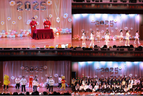表彰大会结束,王欢宣布迎新晚会开始。此次晚会历经数日精心筹备,时长近三个小时,节目编排别出心裁、类型丰富多样,涵盖舞蹈、相声、歌曲串烧、小品等多种形式,为观众带来一场无与伦比的视听盛宴。开场舞《九州同》由数信院舞蹈队精彩呈现,舞步刚劲有力又不失灵动,如同一幅历史的画卷在舞台上徐徐展开,瞬间激活全场的热情。葛瑞莹与杨蕾带来相声《大学“风云”》,这对搭档一登台便以幽默风趣的言辞和活灵活现的表情吸引了众人目光,他们节奏紧凑,包袱不断,现场掌声雷动。随后,强诺祎、王钰阳等同学带来的歌曲串烧《童年回想曲》,他们用清澈而富有感染力的嗓音,唱响一首首经典曲目。小品《新生防骗指南》在陈小霞、宋加龙等同学的演绎下,以生动的表演和幽默的台词,向师生们巧妙地传递出防骗的要点和技巧。而王涵、李彤妍等同学表演的舞蹈串烧《Mr.chu》,以灵动的身姿、灿烂的笑容和极具节奏感的舞步,将青春的活力与热情尽情释放,展现出当代大学生的朝气蓬勃与独特魅力。中场互动环节过后,薛毅飞、王思杭带来的歌曲《what do you want》,时而低沉醇厚,时而高亢激昂,舞台上的灯光与他们的表演完美配合,营造出一种神秘而又充满魅力的氛围。数信院团委学生会精心准备的特别节目《新年快乐》,青春洋溢,台下欢声一片。张承中、张琛浩等同学演唱的歌曲《如果我们不曾相遇》,用深情而舒缓的歌声,唱出了青春岁月里那些不期而遇的美好与珍贵情谊。最后,由郑楚三、苗愿等党员深情演绎的党员节目《使命在肩 歌向党》,他们目光坚定,歌声雄浑有力,在激昂的旋律中,仿佛能看到先辈们为了理想信念奋勇拼搏的身影,他们用歌声传递着新时代党员的使命与担当,以及为了中华民族伟大复兴而不懈努力的决心,使整个晚会在庄重而热烈的氛围中圆满落幕。