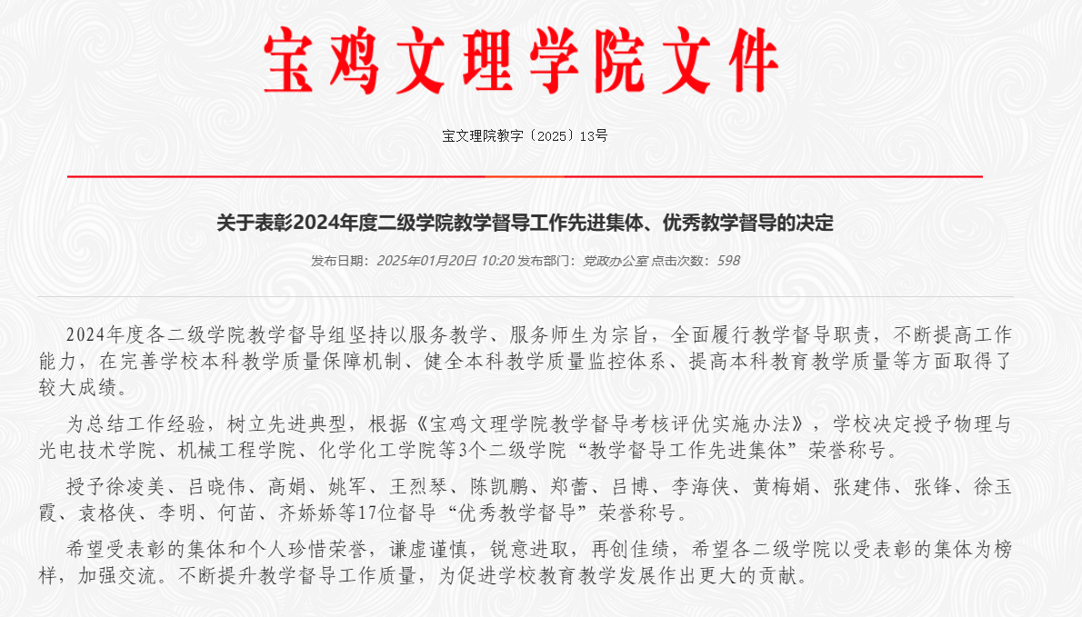 上一条:学院荣获2024年“本科教学工作先进单位”称号