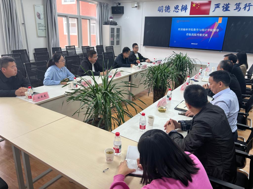 4月27日上午,榆林学院数学与统计学院闫树熙院长一行5人来我校数学与信息科学学院交流访问。数学与信息科学学院党总支书记郝满义,院长刘淳安,副院长杜红珍、姜洪领及各系系主任、专业负责人等在会议室与闫树熙一行进行了座谈。