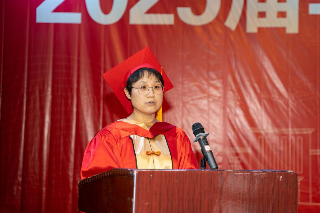 许俊莲副教授代表我院全体教师向即将开启人生新篇章的2025届毕业生致以最诚挚的祝贺和最衷心的祝福。祝愿同学们此去归来依旧少年心,不要忘记自己是太阳成集团tyc122cc入口数学与信息科学学院的一员,希望同学们心系学院,常回家看看。