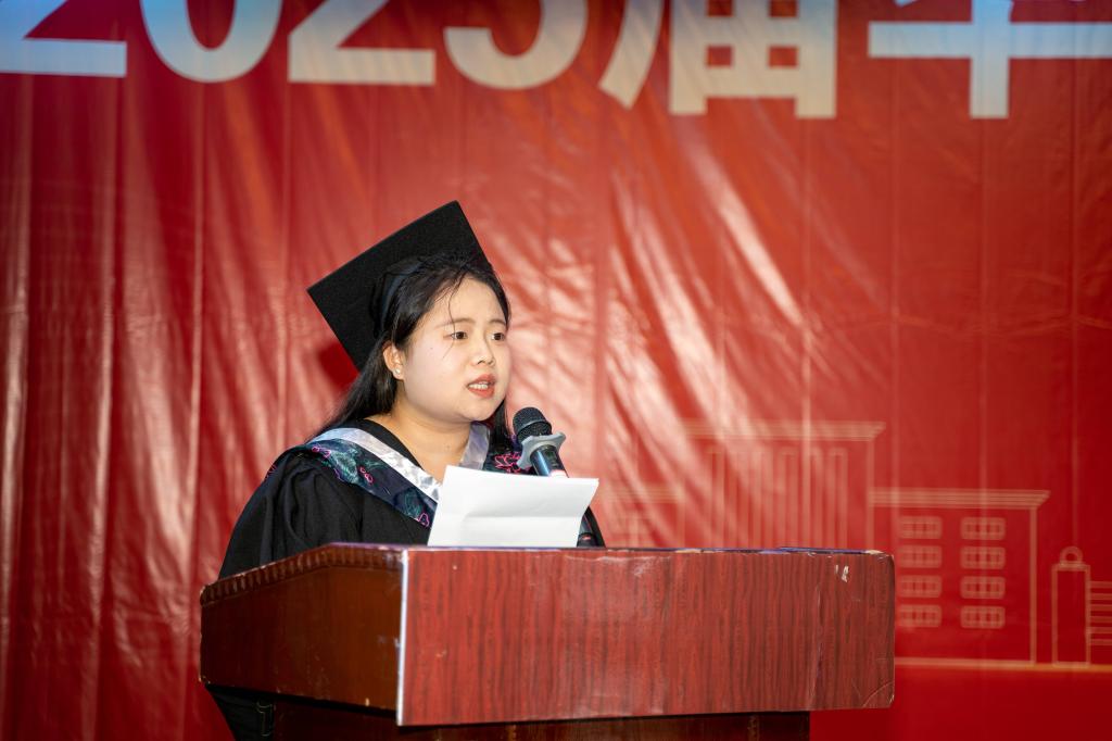 2021级数学与应用数学1班孙丽婷同学代表我院本科毕业生向在校期间所有关心、帮助过他们的师长和亲友表示最衷心的感谢。她们会带着母校和老师们的期盼和嘱托,在未来路途中做具有时代使命感和责任担当的高素质标准人才,展现数信学子的风采!