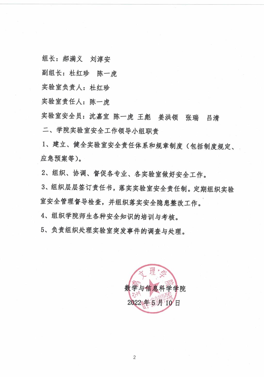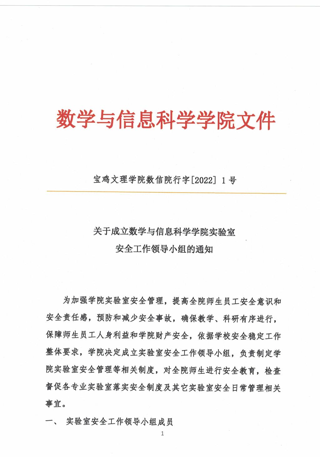 关于成立数学与信息科学学院实验室安全工作领导小组的通知