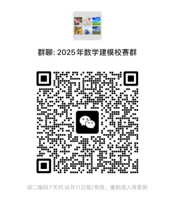 1.报名方式。请有意参赛的学生于20256月11日前直接进入“2025年数学建模校赛微信”,二维码如下: