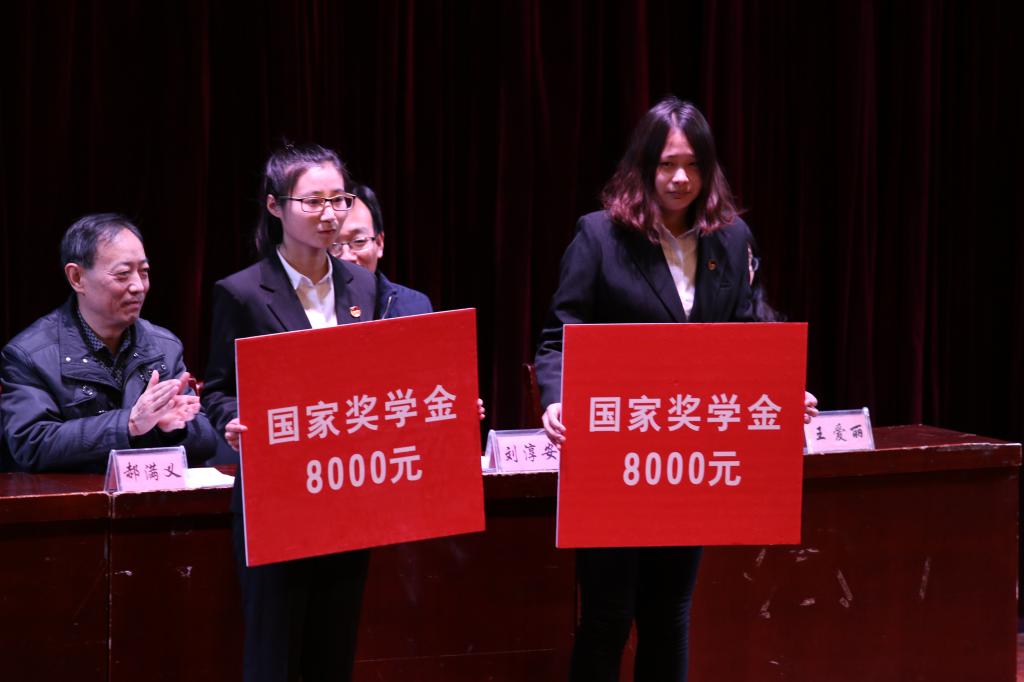 本次表彰大会由副书记王欢主持。首先,郝满义书记宣读了《关于表彰2017-2018学年度国家奖学金、国家励志奖学金表彰决定》、刘淳安院长宣读了《关于表彰2017-2018学年校级奖学金、三好学生、优秀学生干部、先进班集体的决定》以及王爱丽副院长宣读了《关于表彰2017-2018学年度数学与信息科学学院优秀学生干部、优秀团员、优秀心理联络员、文明宿舍、优秀舍长、优秀运动员、先进个人的决定》;随后进行了颁奖典礼,对获奖的学生代表以及先进集体代表进行表彰,学生周斯佳代表获奖学生进行发言;最后,在刘淳安的新年贺词中,拉开了迎新晚会的序幕。