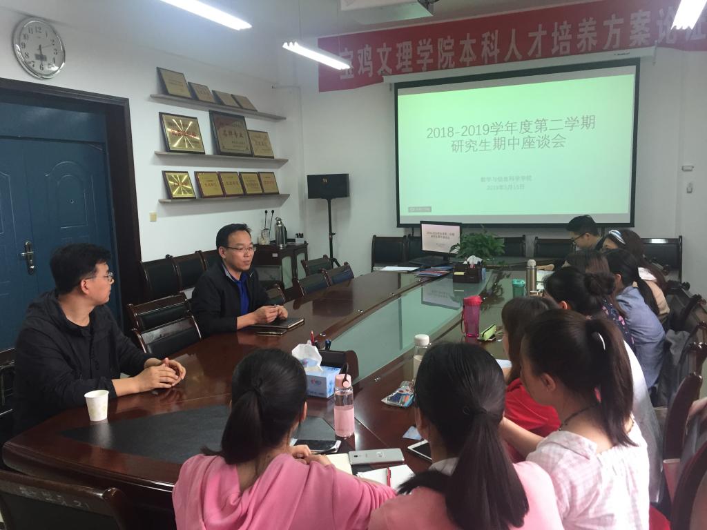515日下午,我院在思贤楼419会议室召开2018-2019学年度第二学期研究生座期中谈会,本次会议由院长刘淳安主持,导师孙小军、学科秘书樊玥及全体研究生参加了此次座谈会。