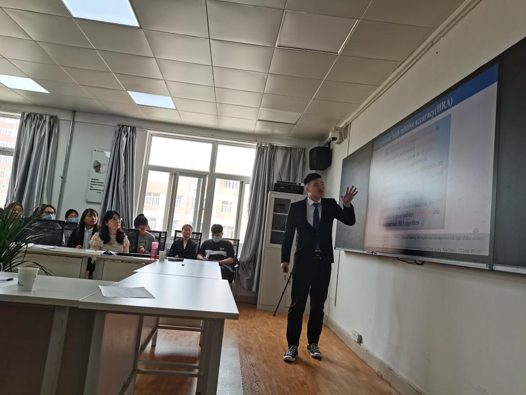2022年5月10日,我院首届研究生学术节-学术分论坛主题报告比赛暨颁奖典礼在424学术报告厅隆重举行。本学院院长刘淳安、科研副院长王爱丽、刘喜兰二级教授以及计算机学院副院长李亚峰教授等9名教师担任了此次大赛评委。学院院长刘淳安宣读开幕式致词和学术主题汇报参赛研究生名单,本次活动由科研副院长王爱丽主持。