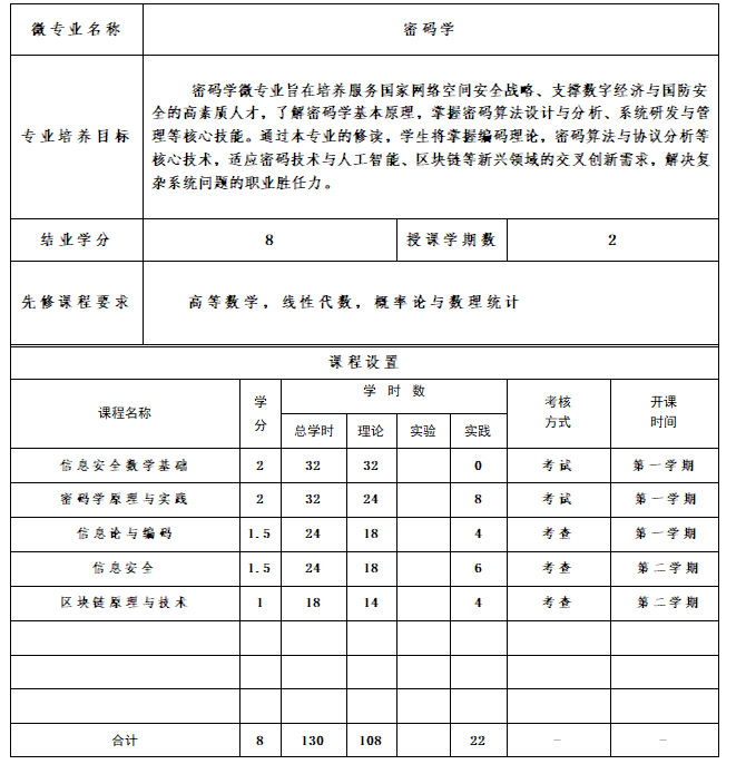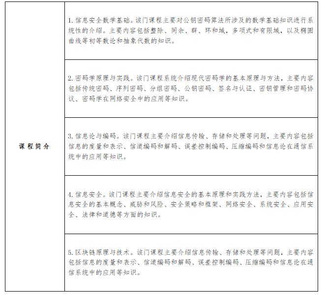 (3)国际化与终身学习。通过课程体系设计,培养适应技术变革的持续学习与创新创业意识,跟踪量子密码、后量子密码等前沿技术,具备技术竞争能力??。